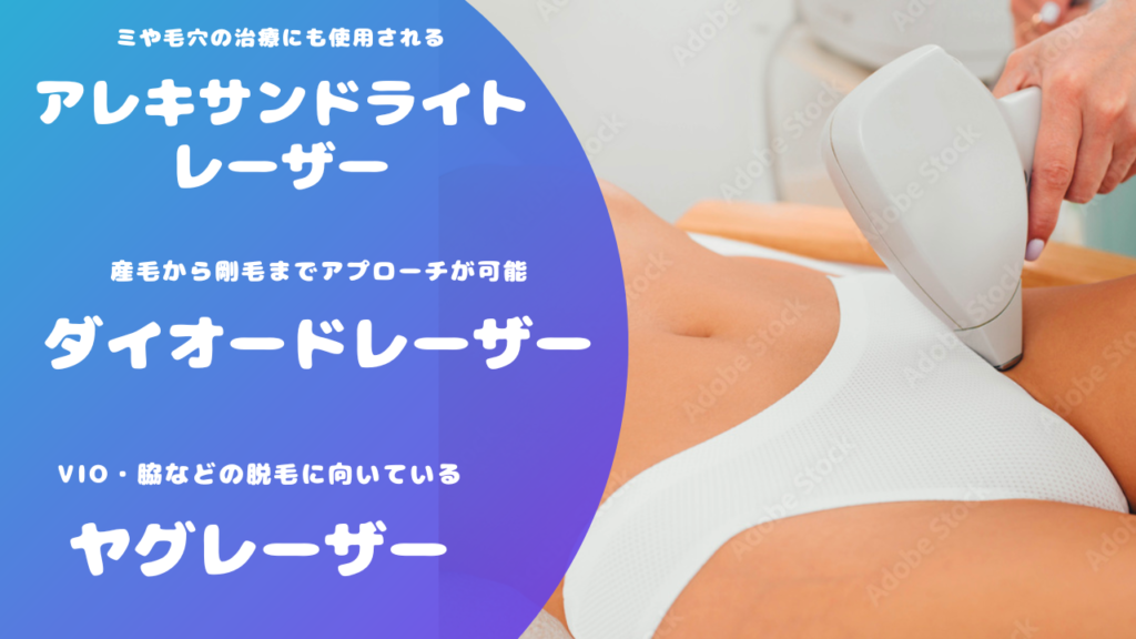 毛質によって対応してくる医療レーザー脱毛機が変わってきます。どんな毛質に適しているのか、レーザーの種類ごとにまとめてみました。